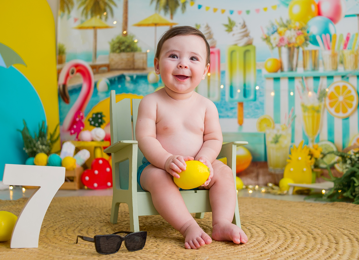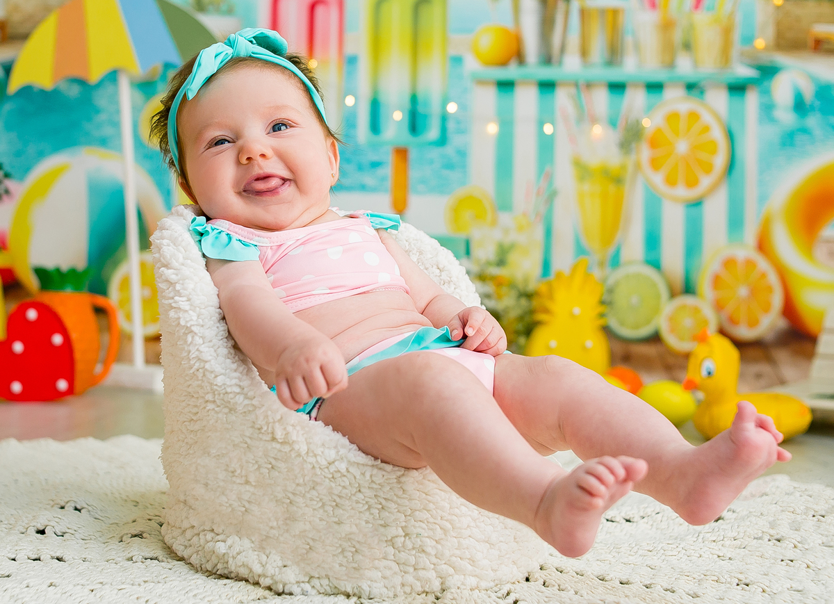 Nossos Bebês - acompanhamento Estúdio Luana Porto Verãozinho Cenário de verao Cenário de piscina para bebê